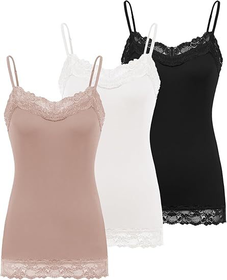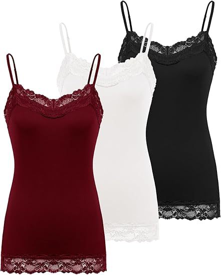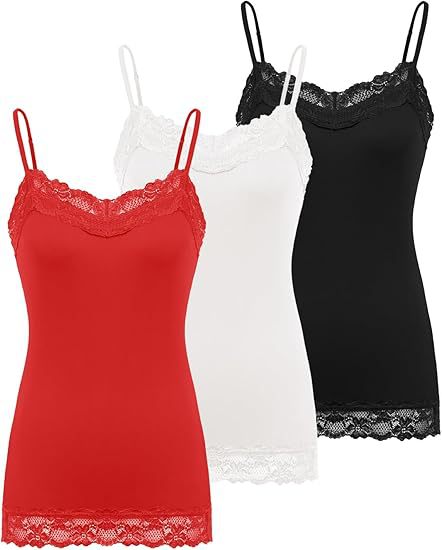 Womens Lace V-Neck Adjustable Thin-Strap Tank Top